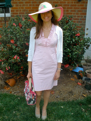 I did not wear the hat to church, but it the Lilly Pulitzer gift with purchase hat that I got as part of my birthday present. I think it is just precious and really want to go to a Kentucky Derby party so I can wear it!